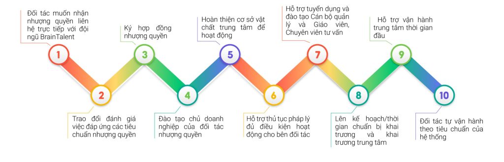 Nếu như bạn là một đơn vị mới, chưa có kinh nghiệm, không có đủ quy trình giám sát về chất lượng giảng dạy, quy trình đánh giá về sự tiến bộ của học sinh, quy trình quản lý nhân sự theo hiệu quả công việc cũng như quy trình chuẩn hóa về cơ sở vật chất, về tuyển sinh, marketing, truyền thông sản phẩm đến với cộng đồng tại khu vực kinh doanh của bạn thì đó chính là lý do bạn nên chọn chúng tôi để trở thành người đồng hành cùng bạn. Vì chúng tôi có đầy đủ tất cả các yếu tố trên, đã được chứng minh qua thời gian và số lượng cũng như chất lượng học viên đầu ra. Bạn hoàn toàn có thể tìm kiếm và kiểm chứng điều này trên các kênh truyền thông Facebook, Youtube, Website “Toán Phát Triển Trí Tuệ BrainTalent” của chúng tôi để thấy được kết quả đạt được từ hàng ngàn học viên mà chúng tôi đã đào tạo.